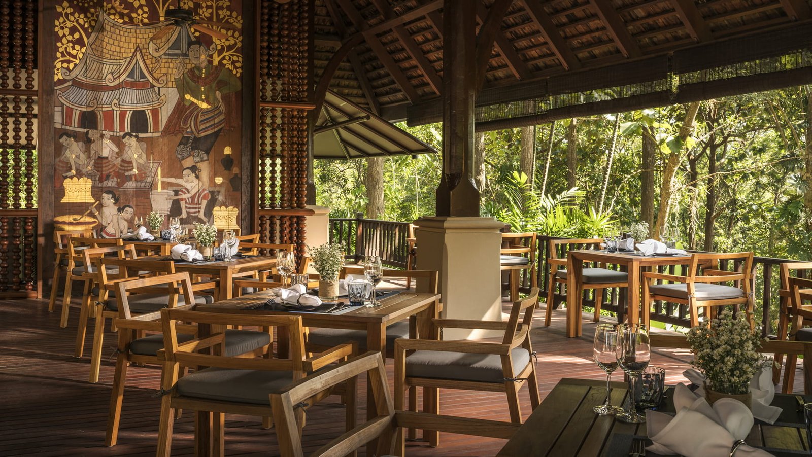Enjoy fine dining at the award-winning Oxygen Dining Room, which combines sophisticated French cuisine with traditional Thai flavors. This glass-clad dining room blends seamlessly with its surroundings, allowing guests to feel as if they are dining in a serene shady garden.