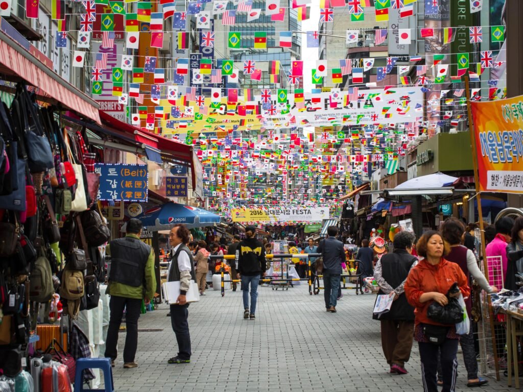 There are two astonishingly huge marketplaces about a kilometer south of the Palace District, with Dongdaemun being the biggest shopping district on the Korean peninsula. The two Great Gates, which were built in the 14th century and have since withstood fires and rot to retain their imperial splendor, used to delineate the area from east to west. Dongdaemun’s stores, boutiques, showrooms, and workshops are spread out along Cheonggyecheon Creek and are both indoor and outdoor. The items for sale have the power to shock, surprise, amuse, and upend; those who value animals may not appreciate seeing monkeys in cages and snakes in boxes. However, there are also many of locally made souvenirs available here that are of better taste. The area comes alive at night when loud music is played at the outlet stores for cheap clothing and the Pungmul Flea Market, which is housed in a run-down former soccer field, starts selling random items like sex toys and army boots.